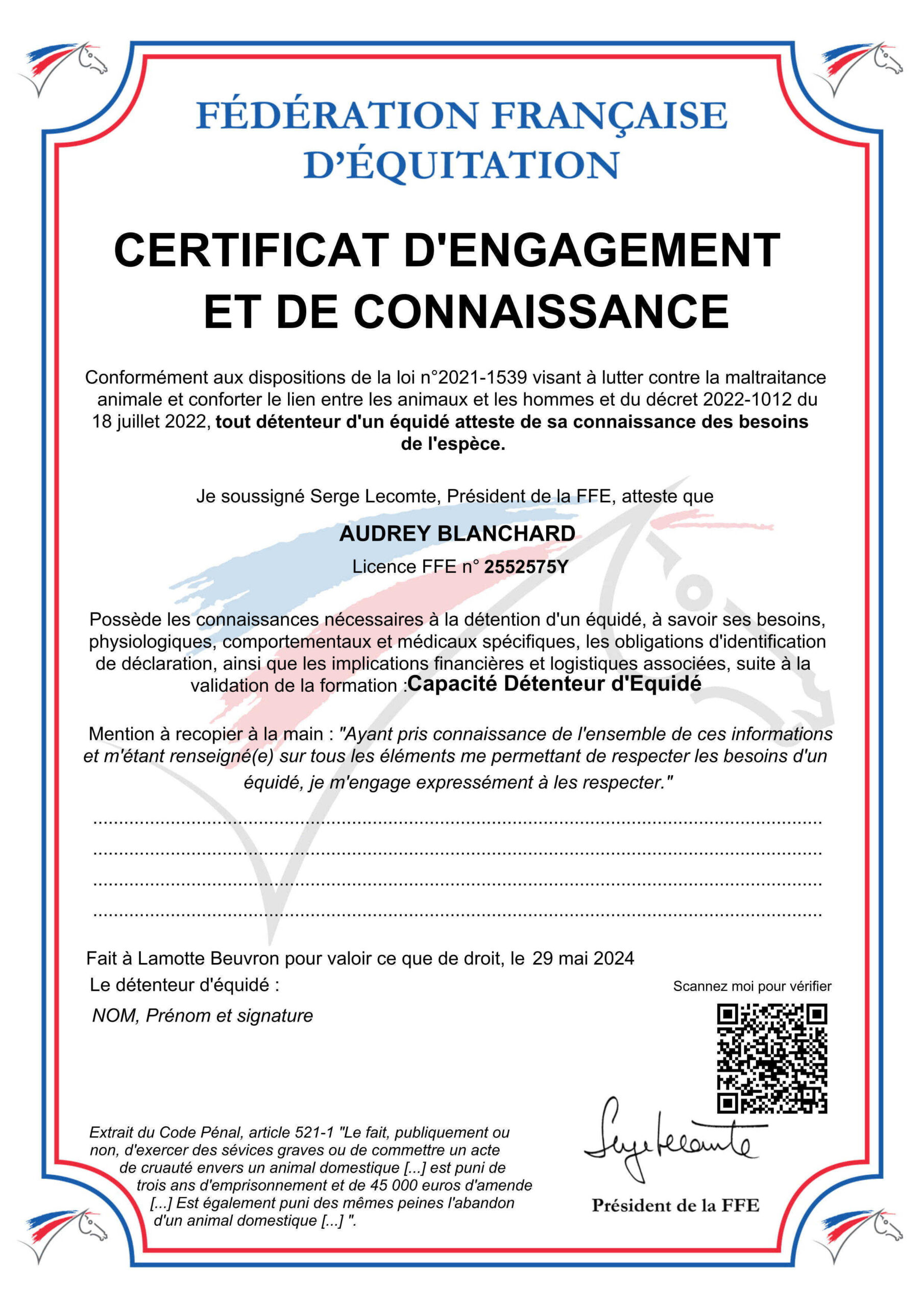 ICI : Diplôme Capacité Détenteur d’Equidé